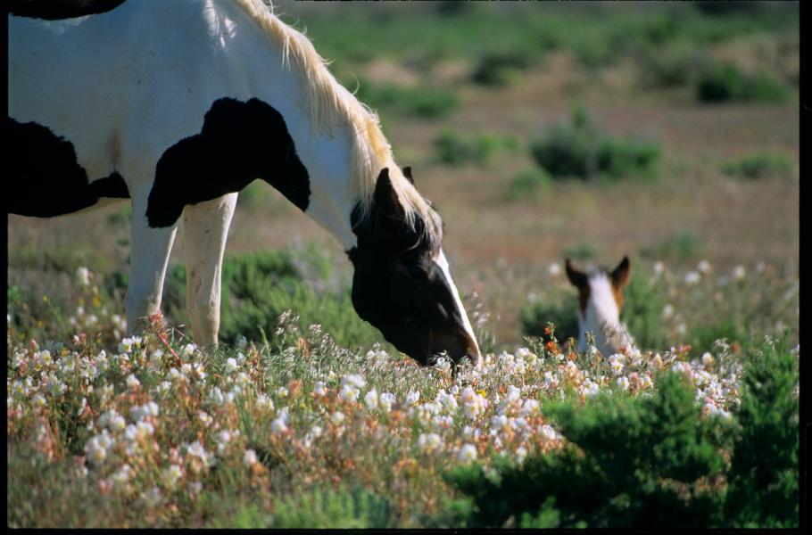 Pokračujeme v naší cestě dál na východ. S údivem sledujeme, jak se najednou poušť, kterou jsme vídávali většinou prašnou, vyprahlou a šedivou, pokryla záplavou pestrých květů – bílých, žlutých, růžových, oranžových, červených i fialových. Kvetou i kaktusy těch nejrůznějších druhů. Na severovýchodě Utahu, mezi pustinami a ostrůvky zelené trávy, vidíme stádo divokých mustangů s několika hříbaty. Jejich kopyta se topí v záplavě křehkých bílých květů. V bezpečném odstupu nás okukují tři přežvykující vidlorozi, velmi rychlé americké antilopy. Jinde si zase vyhrabává myška pilně svou díru nebo přeběhne zajíc s velkýma ušima. Poušť rozkvetla jindy utajenými zárodky života.