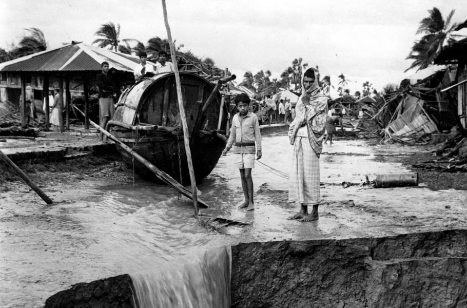 Bouřková sezona v zimě 1970 byla obzvlášť silná a v důsledku velmi teplého počasí se nad ohřátým Indickým oceánem utvářely tropické cyklony. Jedna z nich, pojmenovaná Bhola, dosáhla rychlosti okolo 180 kilometrů v hodině a zamířila k deltě Gangy, která je velmi plochá a současně hustě zalidněná. Navíc ji protkává řada menších řek a cyklona v nich zvedla přílivovou vlnu vysokou 6–9 metrů. Statisíce lidí se tak utopily, zatímco vláda nezvládla nijak zareagovat. Následující rozsáhlé nepokoje přispěly k tomu, že se Východní Pákistán záhy osamostatnil jako Bangladéš. (foto: Getty Images)