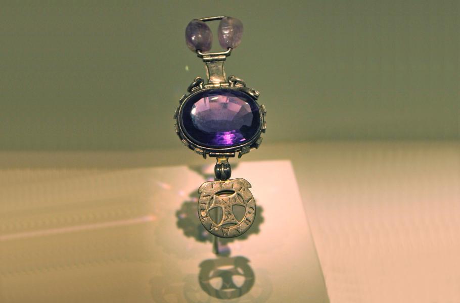 Prokletý ametyst měli ukrást britští vojáci z indického chrámu boha Indry. Poté, co se jeho novému majiteli plukovníku Ferrisovi prudce zhoršilo zdraví, předal kámen spisovateli a badateli Edwardu Heron-Allenovi. Ani jemu se však potíže nevyhnuly, a když po jeho smrti zdědil drahokam syn, začal také chřadnout. Ačkoliv se jej prý ze všech sil snažil zbavit, ametyst si k němu vždy našel cestu zpět. Domnělou kletbu přerušila až Heron-Allenova vnučka, která artefakt věnovala londýnskému Natural History Museum. Instituce ho dnes uchovává v sejfu, údajně v sedmi zamčených krabičkách naskládaných do sebe. (foto: Flickr, Mike Fitzpatrick, CC BY 4.0)