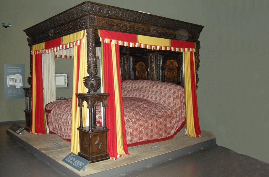 Podle legendy vznikla masivní dubová postel s nebesy v 15. století na objednávku britského krále Eduarda IV. Časem se však dostala „mezi lid“ a putovala po hostincích, kde ji nocující postupně pokryli různými nápisy. Poštvali tím ovšem proti sobě ducha jejího řezbáře Jonase Fosbrookea, který pak útočil na každého neurozeného nocležníka, jenž se na lůžku pokusil vyspat. Ve skutečnosti postel vznikla roku 1590, zřejmě jako turistická atrakce hospody The White Hart ve městě Ware. Ať už prokleté, či nikoliv, jedná se o nejslavnější britské lože – objevilo se dokonce i ve hře Večer tříkrálový Williama Shakespeara. (foto: Wikimedia Commons, VeronikaB, CC BY 2.5)