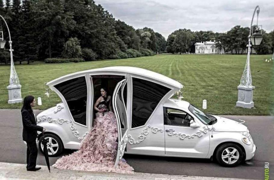 V čem by jezdila Popelka 21. století? Kdyby se narodila v Rusku, pak by si bezpochyby vybrala tento PT Cruiser, přestavěný na něco, co silně připomíná kočár. Zvýšená střední část, velké dveře, kytičková dekorace, vyzdobená světla… Uvnitř se pak ukrývá bar, skleněná podlaha, kožené sedačky a neonová světla. Zkrátka, pro princezny bez vkusu jako stvořené.