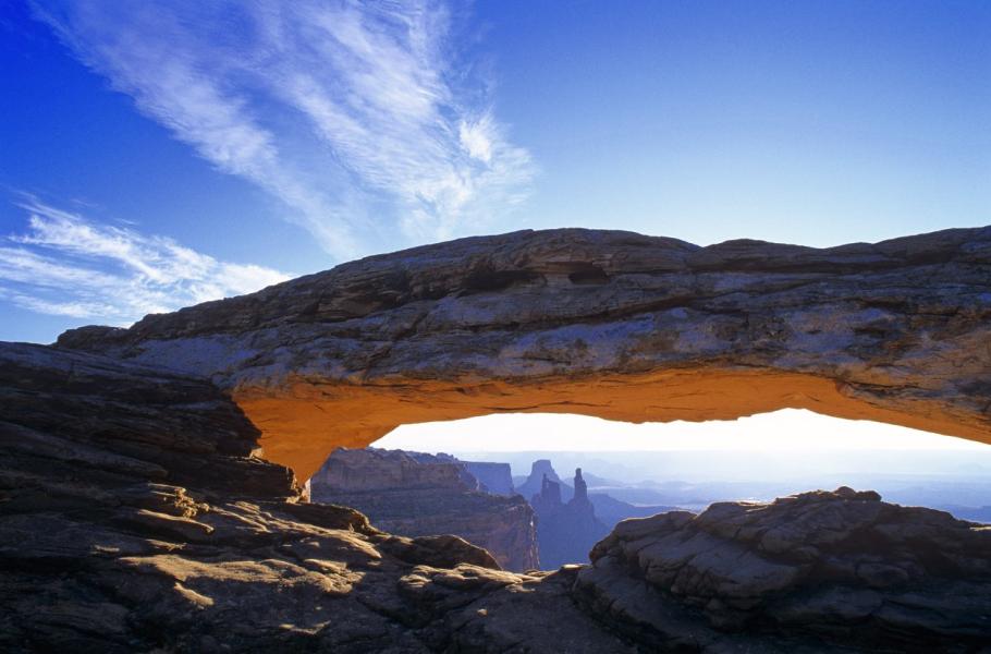 Skalní útvar Landscape Arch v utažském parku Arches měří 91 metrů a patří mezi největší přírodní mosty na planetě. Jedinečné přírodní skulptury z rudého a nazlátlého pískovce jsou výsledkem milionů let eroze, která z původně jednolitého skalního podloží vytvořila kamenné klenby.