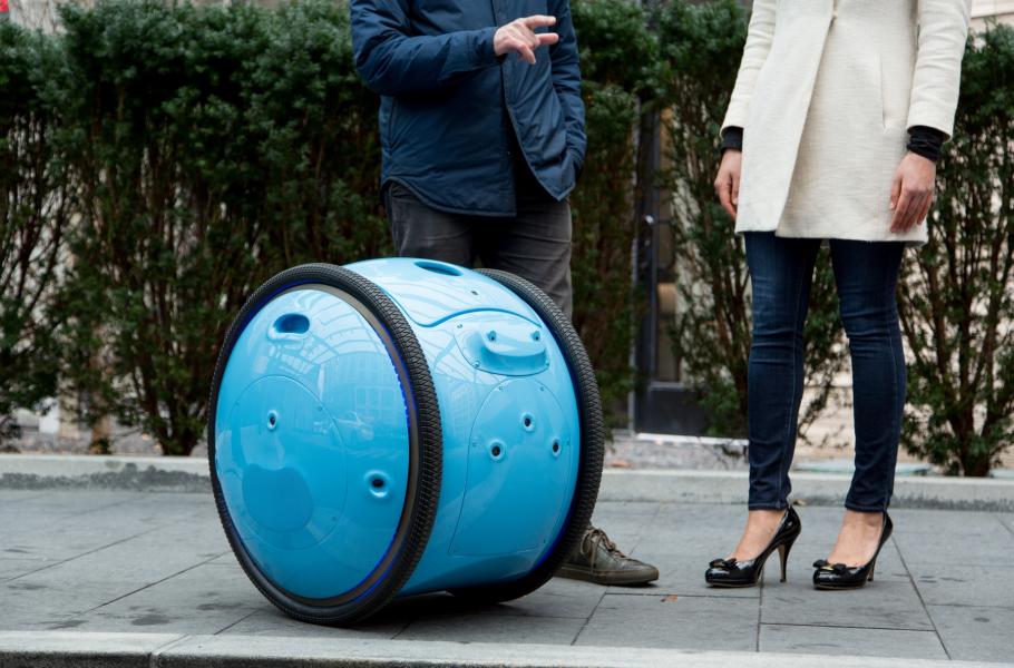 Bostonská společnost Piaggio Fast Forward představila nového osobního transportního robota. Kulatý, 66 centimetrů vysoký robot, se dokáže fungovat ve dvou režimech – podobně jako taška na kolečkách může následovat svého majitele. Na již známé trase se ale dokáže pohybovat i zcela autonomně.