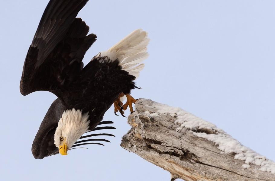 Obdobně americký orel bělohlavý (Haliaeetus leucocephalus) dříve žil na rozsáhlých územích Severní Ameriky v počtech odhadovaných až na 500 000 kusů. V polovině 20. století přežívalo jen asi 400 hnízdících párů. Na vině byl především bezohledný lov, protože orel byl viněn z útoků na mláďata hospodářských zvířat. Jen na Aljašce se podle oficiálních statistik střílelo přes 5 000 orlů ročně. Mnoho dravců doplatilo na nárazy do budov nebo na kolizi křídel s dráty vysokého napětí.