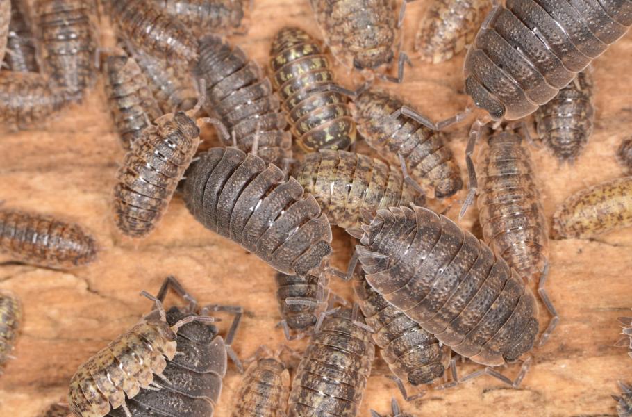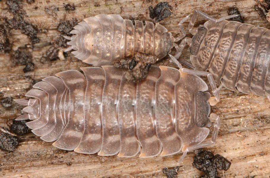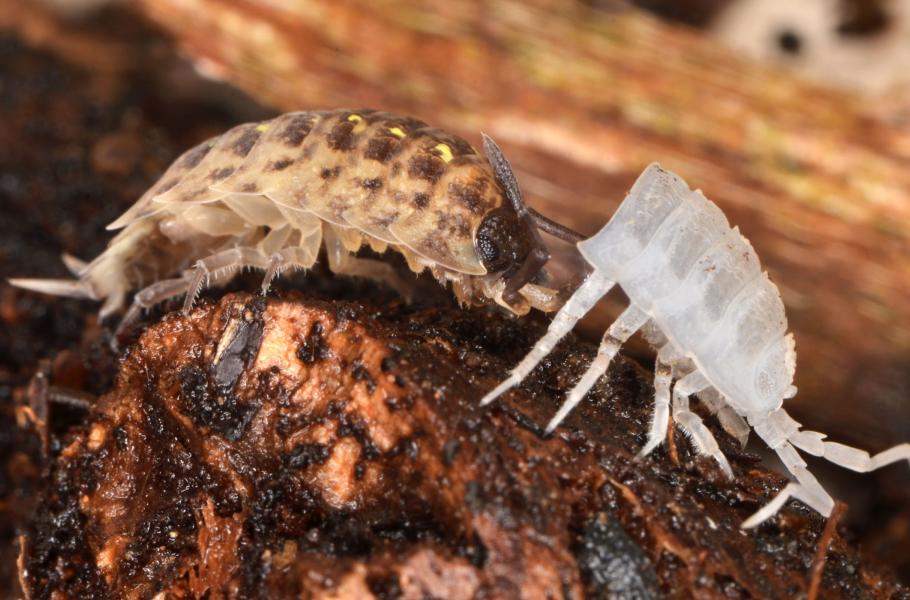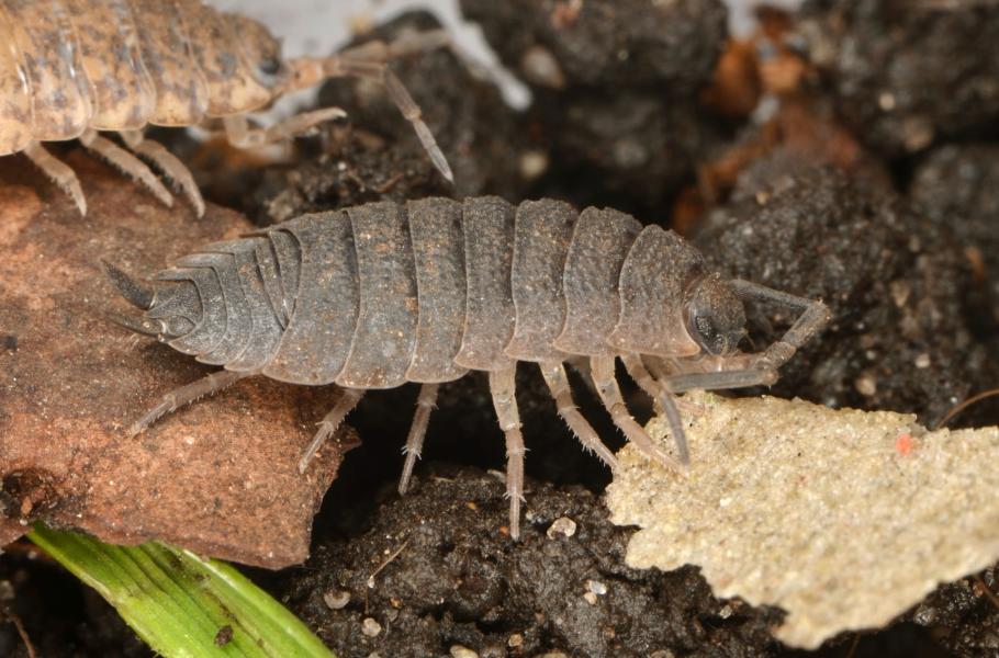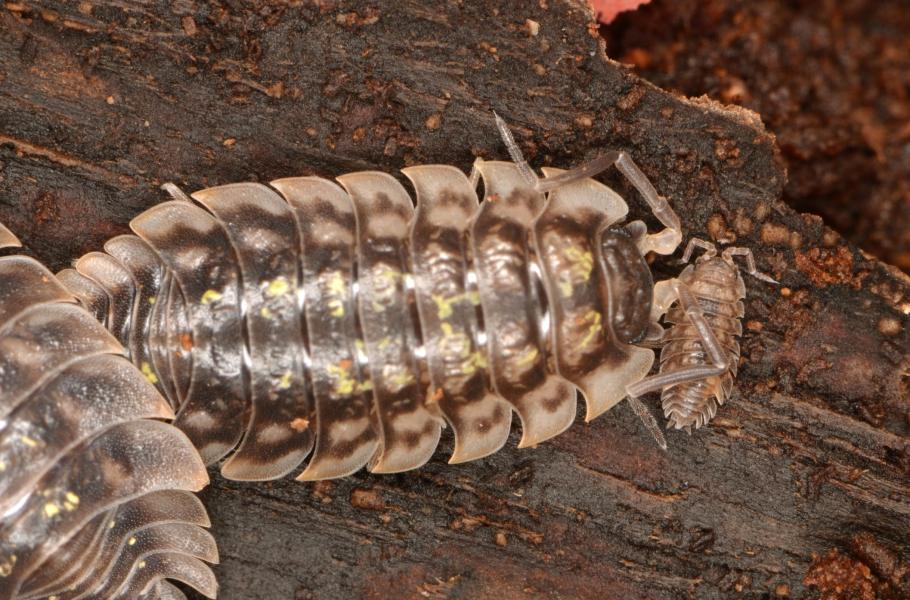 Stínka skvrnitá (Porcellio spinicornis) při svlékání. Stará pokožka často slouží jako první zdroj vápníku a dalších stavebních látek