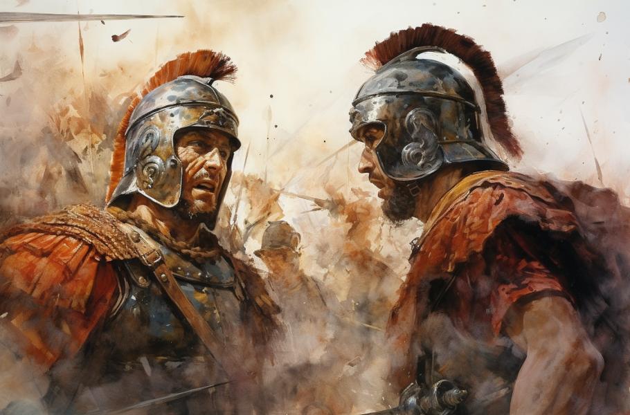 Římská moc se šířila antickým světem nezadržitelně jako povodeň. Legie dobývaly nová území a jejich nasazení je přivedlo daleko na sever, dokonce až tam, kde dnes leží Morava. (ilustrace: Midjourney AI, PDM 1.0)