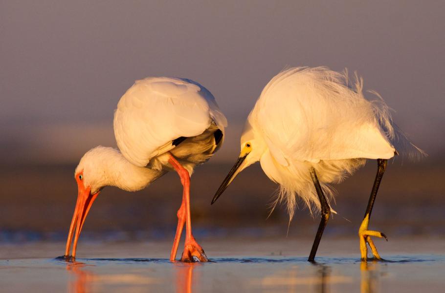 Jedno přísloví praví, že „příležitost dělá zloděje“. Doslova jej naplnily volavky bělostné na jiné floridské pláži nedaleko městečka Fort Myers. Soustředily se na okrádání jiných ptáků a nejvíc jejich řádění odnášeli ibisi bílí. Gang volavek bělostných jim nedal chvíli klid. Kopírovaly každý ibisův krok, a jakmile odletěl, buď se vydaly za ním, nebo si vyhlídly jinou oběť. Jejich počínání opodál netečně pozorovala volavka tříbarvá, která loví převážně samotářsky a spolu s volavkou červenavou předvádí jeden z nejkrásnějších rituálů lovu.