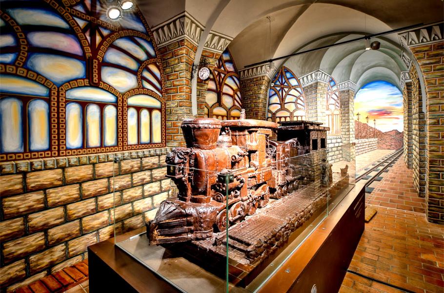Přívlastkem „největší“ se pyšní i 340 centimetrů dlouhý čokoládový vlak vážící 520 kilogramů. „Inspirovala jsem se na jednom nádraží v Belgii, kde mají vystavený vlak z čokolády hned vedle ostatních vagonů normálně na kolejích,“ vysvětluje manažerka, jak se nápad zrodil. Také táborská lokomotiva měla původně zdobit nedalekou vlakovou stanici, ale nakonec si ji návštěvníci muzea oblíbili natolik, že se unikátní exponát dočkal samostatné místnosti.