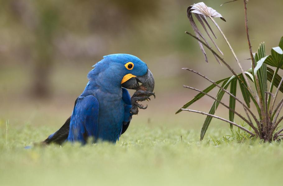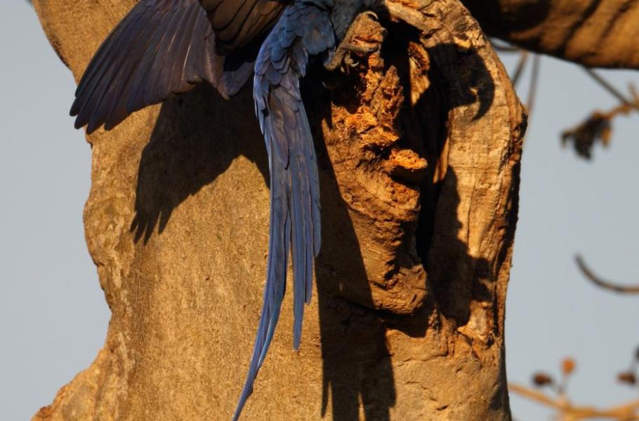 Když jsem se už po třetí vracel do nejkrásnější bažiny světa, do brazilského Pantanalu, byl můj hlavní zájem soustředěn na nejkrásnějšího papouška Brazílie, vzácného aru hyacintového (Anodorhynchus hyacinthinus). Tento nádherný opeřenec patří mezi ohrožené druhy, které byly ve volné přírodě již téměř vyhubeny. Posledním útočištěm se jim stal právě Pantanal.
