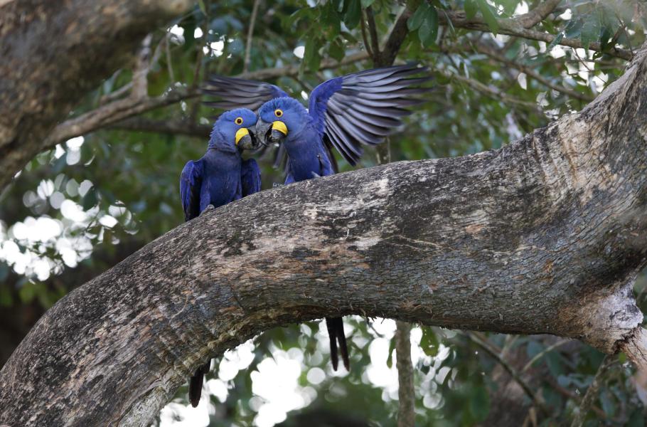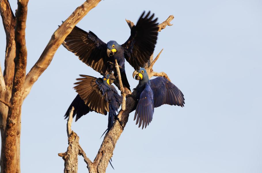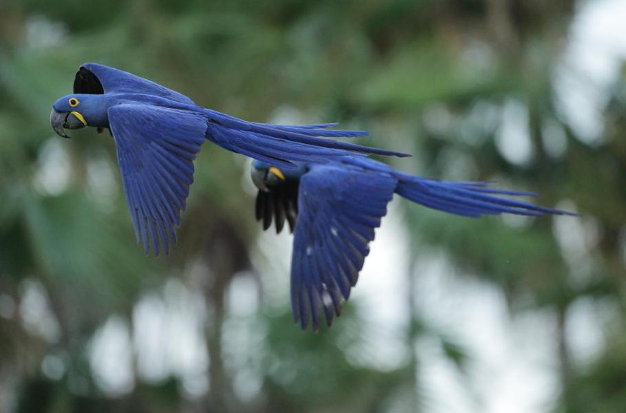 Ara hyacintový je největším létajícím papouškem světa. V současnosti žije ve volné přírodě maximálně 7 000 kusů těchto nádherných opeřenců, přičemž jejichž posledním útočištěm je brazilská zátopová oblast Pantanal