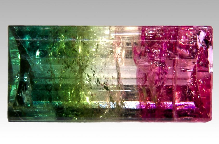 Kámen všech barev – tak lze nazvat turmalín. Po celém světě se nachází v mnoha variacích: černý, hnědý, červený, žlutý, zelený, modrý, bezbarvý či průhledný. Žádný jiný minerál nenabízí takovou škálu nádherných barev. Některé turmalíny mohou být dokonce dvojbarevné či trojbarevné. Velkou pozornost vzbuzují takzvané melouny, tedy turmalíny s červeným středem a zeleným okrajem. Zvláště efektní jsou průřezy takovýmito krystaly.