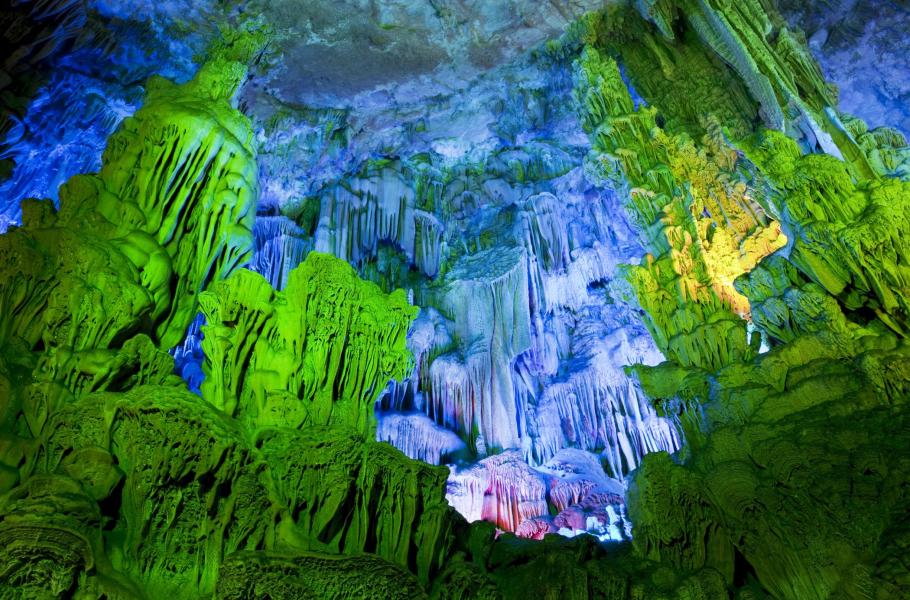 Krasové útvary Asie: Jeskyně všech myslitelných barev