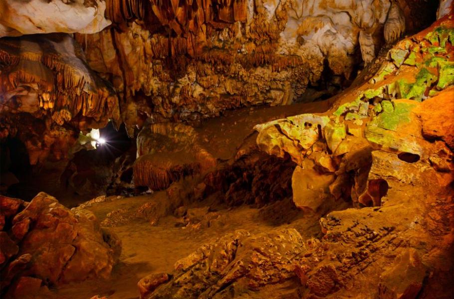 V krasových jeskyních plných krápníkových útvarů se může fantazie nespoutaně rozletět a objevovat nesčetné bizarní světy. Pokud se k přírodnímu dílu přidá ještě promyšlené barevné nasvícení, vznikají zákoutí, před nimiž zůstává člověk ohromeně stát