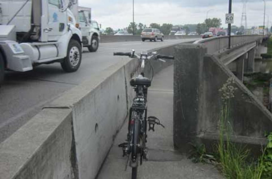 Vancouverský most Knight Street Bridge drží smutný rekord v počtu dopravních nehod v rámci celé Britské Kolumbie. Radnice jej proto „zvelebuje“, aby byl bezpečnější nejen pro řidiče, ale i pro chodce a cyklisty. Posledním dvěma jmenovaným skupinám dokonce vytyčila speciální pruh po krajích vozovky a oddělila jej od projíždějících vozidel betonovými příčkami. Pěší se tedy čistě teoreticky mohou cítit bezpečněji, cyklisté však mají nadále smůlu: Betonové hrazení je totiž při nájezdu na most usazeno tak blízko zábradlí, že se do mezery stěží vejde kolo bez jezdce. Při průjezdu byste tak utržili minimálně odřeniny.