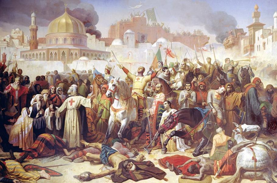 Kronikář Foulcher z Chartres o krveprolití v ulicích Jeruzaléma při křižáckém útoku napsal: „Viděli byste něco úžasného, když naši panošové a chudší pěšáci prohlédli chytrost Saracénů a mrtvé je párali, aby jim z vnitřností vybrali peníze, byzantiny, které zaživa spolykali ohavnými chřtány. Z toho důvodu po několika dnech snesli mrtvoly na velikou hromadu, spálili je a takto v popelu snáze nalezli zlato.“