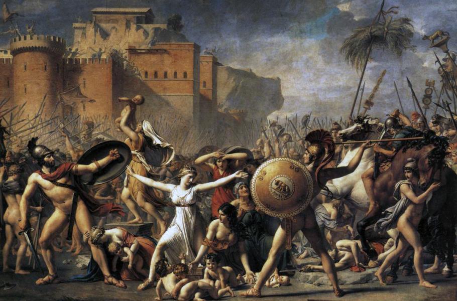 Sabinky podle jedné verze postupem času zahořely k novým římským manželům láskou. (ilustrace: Wikimedia Commons, Jacques-Louis David, CC0)