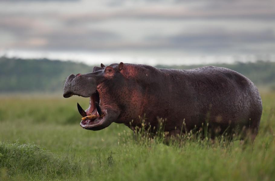 Hroch obojživelný je zřejmě nejnebezpečnějším zvířetem Afriky, zejména brzy ráno, kdy opouští pohodlí vodního království a vydává se na čerstvou trávu. Nám se nechtěně podařilo hrocha „oddělit“ od bezpečí břehu velkého jezera, které vzniká v období dešťů v kráteru. Bez váhání na nás zaútočil.