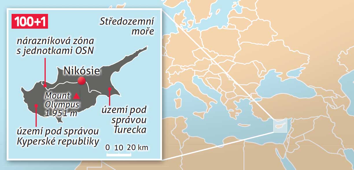 Kypr, ostrov velký zhruba jako sedmina České republiky, stojí v mnoha ohledech na rozhraní. Geograficky patří spíše do Asie, politicky se jeho větší část stala už před deseti lety členem EU. Severní třetinu de facto okupuje Turecko