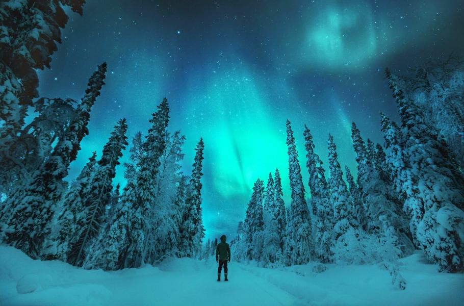 Polární záře oblohu rozsvítí neonovým světlem. V Laponsku je lze pozorovat hlavně v zimě. (foto: Shutterstock)