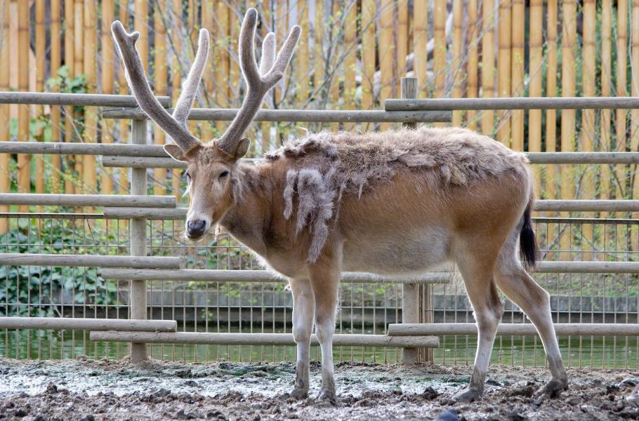 V minulosti jeleni milu (Elaphurus davidianus) obývali mokřady a rákosové porosty na středovýchodě a severu Číny. Kvůli nadměrnému lovu a rozšiřování rýžových polí vyhynuli ve volné přírodě před téměř 2 000 lety. (foto: Wikimedia Commons, Carlos Delgado, CC-BY-SA)