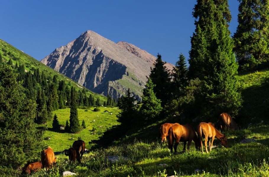 Nejvyšší vrcholy mohutného hřebene Ťan-Šan dosahují výšky sedmi tisíc metrů nad mořem a dostupné jsou jen trénovaným horolezcům. Ochutnat krásu tohoto pohoří je však možné i při trecích v „nižších patrech“