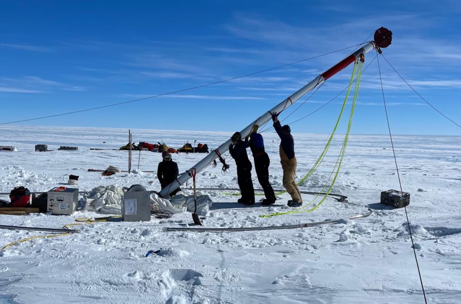 Vztyčování vrtné soupravy na Allan Hills v Antarktidě. (foto: COLDEX, Julia Marks Peterson, CC BY-SA 4.0)