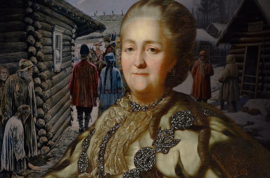 Podle nepravdivé historky byla Kateřina Veliká při inspekční cestě po Krymu oklamána, když kulisy vesnic považovala za pravé. (ilustrace: Wikimedia Commons, PDM 1.0)