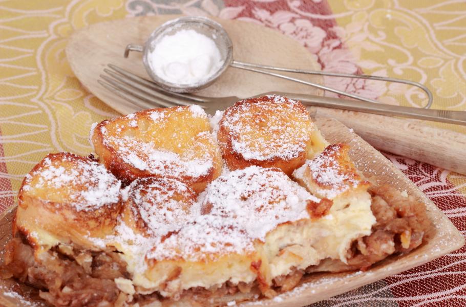 Chcete vyzkoušet staročeskou žemlovku podle Šárky Škachové? Zapékací mísu vymažte máslem a vysypte strouhankou z mandlových sušenek, na ni rozprostřete plátky vánočky pokapané máslem a přidejte jablka, která jste den předem naložili do sklenice s citronovou šťávou. Vše pak zalijte čtyřmi žloutky, rozmíchanými v plnotučné smetaně slazené medem.