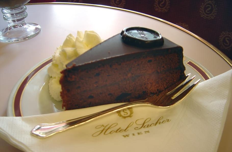 Franz bere příležitost do svých rukou a snad z mladické nerozvážnosti vymyšlí úplně nový recept na dort. Ještě nikdo ho nezkoušel. Sice kdysi podobný četl ve staré kuchařce, jenže nemá všechny ingredience, a tak improvizuje. Může to být propadák. Opak je ale pravdou: hosté jsou nadšeni. Sacher dort je od té doby chloubou vídeňských cukrářů, i když jeho recept je dosud rodinným tajemstvím. A svému vynálezci i jeho následovníkům zajistil slávu, která trvá do dnes. (foto: Wikimedia Commons, David Monniaux, CC BY-SA 3.0)