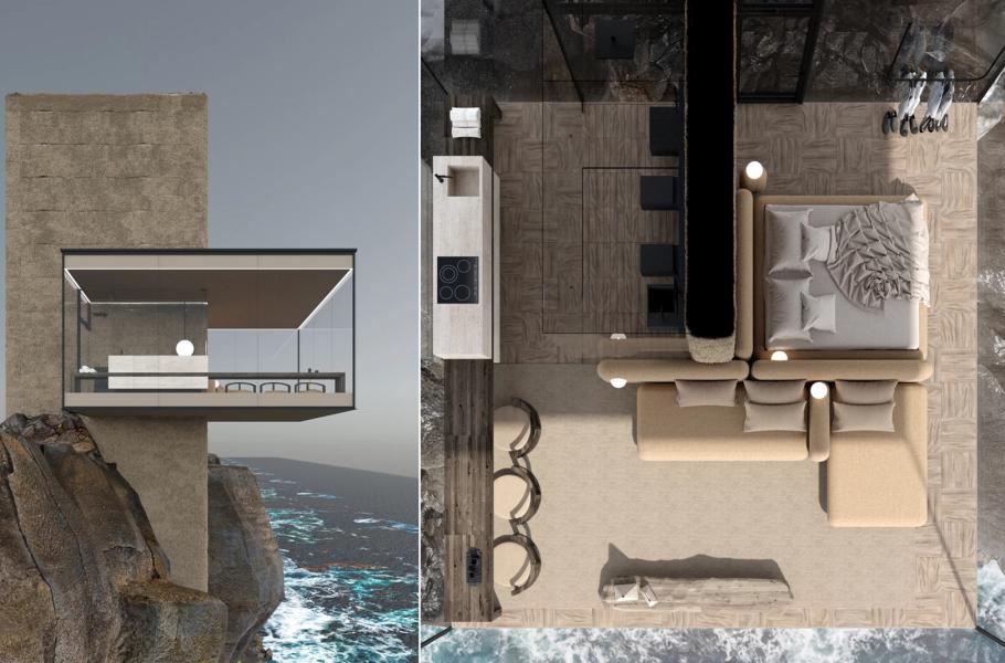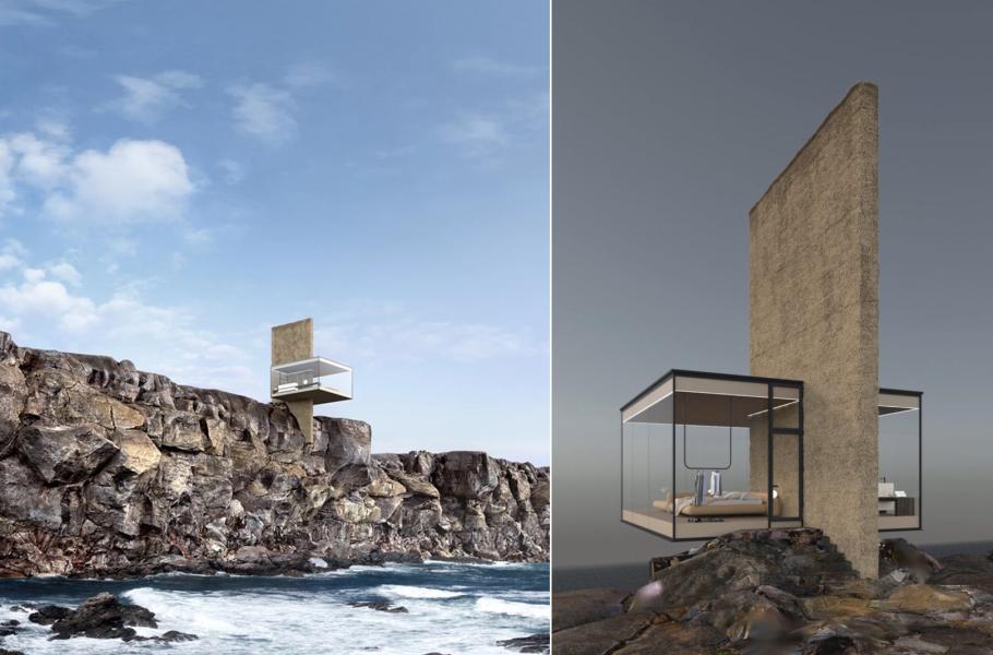 Nový návrh originální a minimalistické prosklené chaty je dílem ukrajinského architektonického studia Yakusha Design. Nejnovější počin tohoto studia příznačně nazvaný „The Air“, byl navržen pro skalnaté pobřeží Atlantiku a podle zakladatelky studia Victorie Yakusha je jako stvořený pro odpočinek surfařského fanatika.