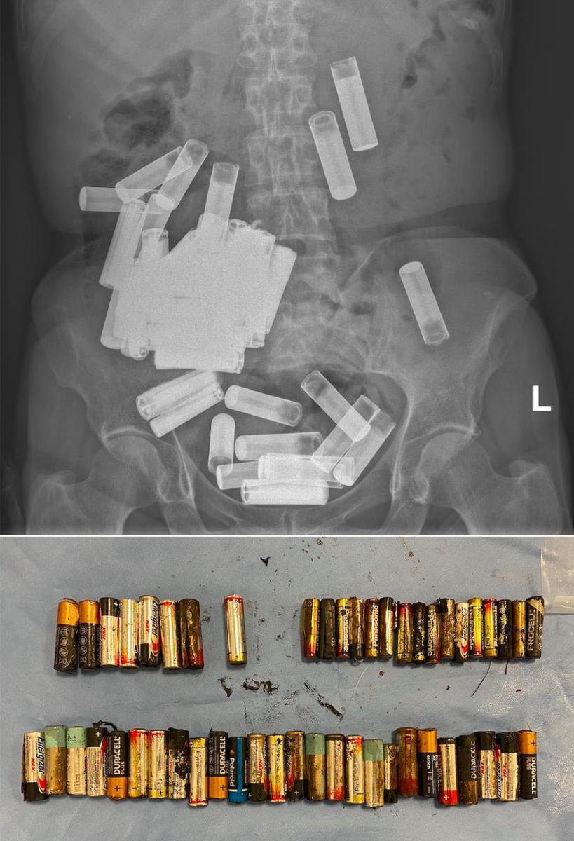 Rentgen v dublinské Nemocnici svatého Vincenta odhalil v břišní dutině 66leté ženy množství cizích objektů, načež se od ní lékaři dozvěděli, že jde o tužkové baterie. Ani jedna jí přitom neblokovala trávicí ústrojí, proto se odborníci rozhodli počkat, zda nevyjdou přirozenou cestou.
