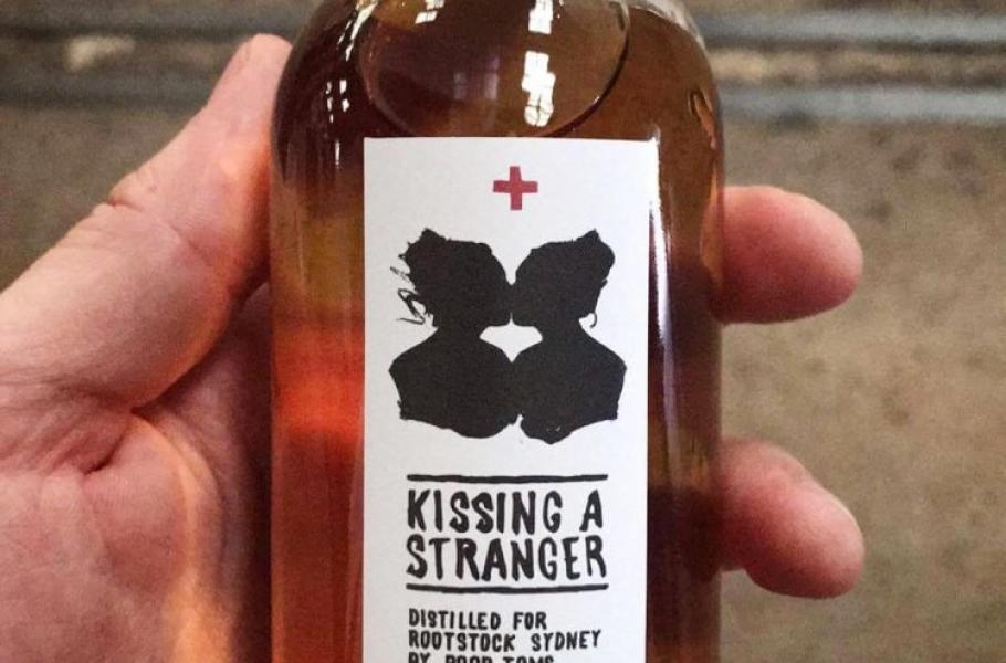 Když se Peter Bignell po skončení vinného festivalu, který se před rokem konal v Sydney, rozhlédl, jeho zrak spočinul na nádobách určených k vyplivnutí soutěžních vzorků degustátory. Jako příznivce udržitelného stylu života ho zarazil objem „odpadu“ - po dvoudenním soutěžním klání zůstalo v nádobách okolo 500 litrů odpadového vína. Jako správný muž činu si ovšem věděl rady – vinný odpad se rozhodl zpracovat na originální pálenku. Jeho novinka dostala dokonale příznačný název – Kissing a Stranger (tedy Líbání cizince).