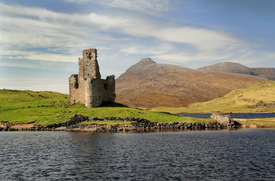 Zřícenina hradu Ardvreck se stala svědkem mnoha krvavých bojů mezi horalskými klany MacLeodů a McKenziů.