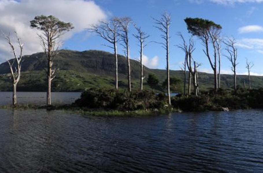 Na první pohled se krajina okolo jezera Assynt jeví jako nepřístupná a neplodná směsice vodních ploch a holých kopců a – upřímně – ani na druhý pohled si nepovede lépe. To, co občas vypadá jako scéna z cizí nepřátelské planety, je ovšem „novinka“ z relativně nedávné historie. Před pěti tisíci lety představoval tzv. Kaledonský les (Římané pojmenovali Skotsko Kaledonie) mohutnou mozaiku pastvin s vysokou trávou, remízků kosodřevin a hlubokých pralesů. Kromě špiček nejvyšších kopců šlo o živou zelenou krajinu, kterou obývala stáda praturů, smečky vlků, medvědi, rysi i bobři. Půda okolo Assyntu je jako jedna z mála v této části Skotska skutečně úrodná a příchod člověka a především prvních zemědělců krajinu výrazně narušil. Kromě vypalování lesů se na podobě zdejší země podepsal i nástup studenějšího počasí, které přálo rozvoji vřesovišť a bažin.