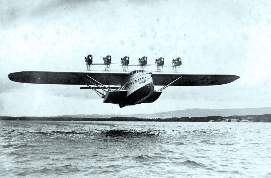 Dornier Do X měl sice kořeny v meziválečném Německu, ale vyráběl se v továrně na švýcarské straně Bodamského jezera. Němci se totiž zvolenou lokací pokoušeli vyhnout omezením, která po první světové válce stanovila Versailleská smlouva. Stroj Do X pojal až sto cestujících a jeho maximální vzletová hmotnost činila 56 tun, tedy skoro dvojnásobek prázdného letounu. Přestože dokázal vyvinout rychlost přes 200 km/h, cestující si jej příliš neoblíbili, a tak nakonec vznikly pouhé tři exempláře. (foto: Profimedia)