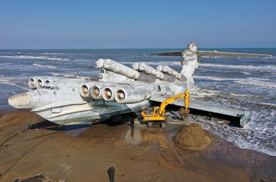 Ekranoplán, tedy stroj na pomezí lodi a letounu, držel mezi roky 1966 a 1988 rekord coby nejtěžší a největší na světě – bez nákladu vážil 240 tun a na délku měřil 92 metry. Utajovaný projekt studené války nakonec zastavily právě jeho rozměry: Sověti letoun přezdívaný „kaspická příšera“ tak dlouho testovali, až se v roce 1980 zřítil do Kaspického moře. Vrak poté generalita označila za příliš těžký na vyzvednutí, a na dně spočívá dodnes. Stal se však předlohou pro ekranoplány třídy Lun, které sovětská armáda používala až do 90. let. (foto: Profimedia)
