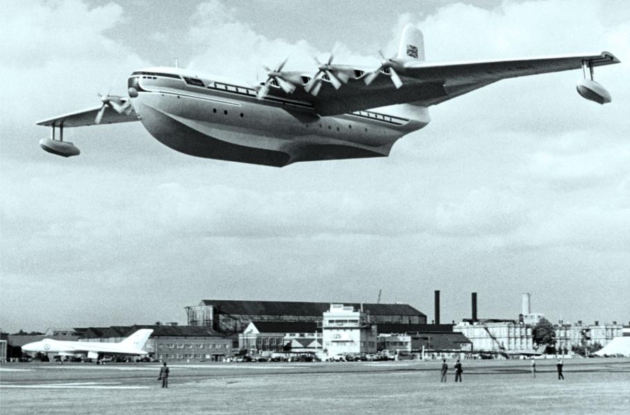 Šestimotorový létající člun SR.45 Princess se měl stát přepychovým dopravním prostředkem, v němž by zámožní Britové cestovali mezi ostrovy a New Yorkem. Ve své době šlo o největší kompletně kovové letadlo, ovšem jeho vývoj brzdilo nasazení experimentálního pohonu. Očekávalo se, že po úspěšných testech zadá britská vláda zakázku na výrobu, ale nakonec se tak nestalo: Princezna sice fungovala, nicméně éra obřích létajících lodí v době jejího dokončení dávno minula. Vznikl tedy jediný exemplář a torza dvou dalších zůstala rozpracovaná. (foto: Profimedia)
