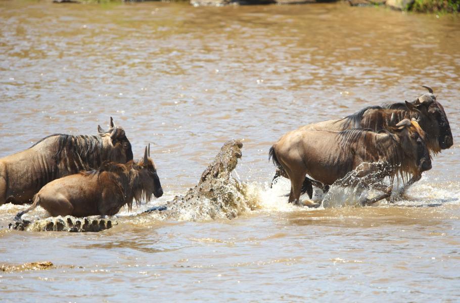 Pakoně každoročně migrují mezi otevřenými pláněmi parku Serengeti v Tanzanii a rezervací Masai Mara v Keni. Nejdramatičtějším okamžikem jejich dlouhých cest je brod přes rozbahněné africké řeky. Břehy bývají velmi vysoké, a tak pakoně dopadají nejen do hlubší vody, ale také na balvany trčící z vody, nebo na hřbety svých druhů. Zvířata si často lámou nohy a po velkých přechodech bývá řeka poseta desítkami mrtvých nebo umírajících. Mnoho pakoňů se při pokusu dostat se na druhou stranu stává obětí číhajících krokodýlů, pro něž je toto období roku dlouho očekávanou hostinou.