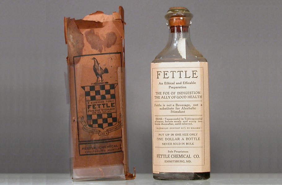 Žaludeční potíže nepochybně trápily už naše dávné předky. Začátkem 20. století však mohli lidé směle zavrhnout obecné rady jako jíst zdravěji, případně zajít k lékaři: Stačilo si pořídit lahvičku přípravku Fettle, který vedle zažívacích obtíží mírnil také abstinenční příznaky. Ačkoliv etiketa uváděla, že nejde o náhradu lihovin, zmiňovala rovněž 52% obsah alkoholu. Pokud tedy pacient užíval čajovou lžičku před jídlem a pak každé dvě hodiny po něm, příjemně se propil do blaženosti. (foto: Smithsonian, CC0 1.0)
