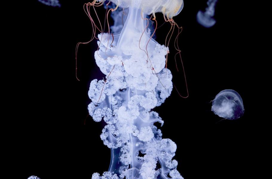 Elegantní mořské tanečnice nabízejí úchvatný pohled, zejména pokud je můžete pozorovat za sklem akvária. Medúzy dostaly do vínku žahavá vlákna, jež při dotyku vylučují ostře pálící jed, a některé druhy mohou být dokonce životu nebezpečné. (foto: Czech Nature Photo, Michal Dobeš)