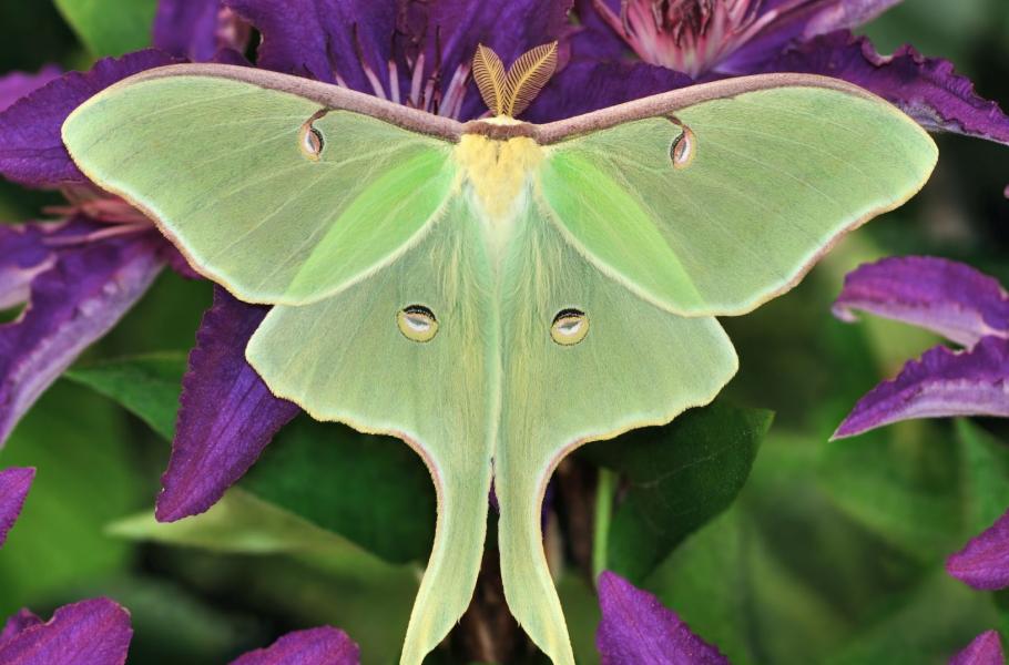 Někteří motýlci mají tak skvěle vyvinutý senzor na samičí feromony na svých zpeřených tykadlech, že svoji družku dokážou vycítit ve vzdálenosti kolem deseti kilometrů! Přeborníkem je druh martináč měsíčitý (Actias luna), jehož čich se vyvinul tak, aby zachytil jediný pach – pohlavní feromon samiček – na vzdálenost 11 kilometrů. (foto: Shutterstock)