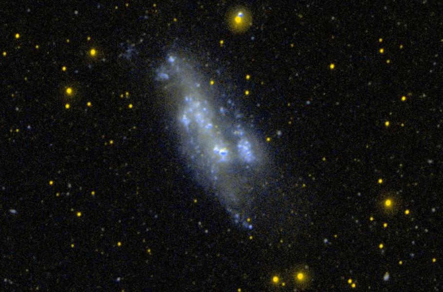 Ne každý hvězdný ostrov musí mít v centru černou díru. Příklad může nabízet nepravidelná trpasličí galaxie NGC 2366. (foto: Wikimedia Commons, NASA, PDM 1.0)