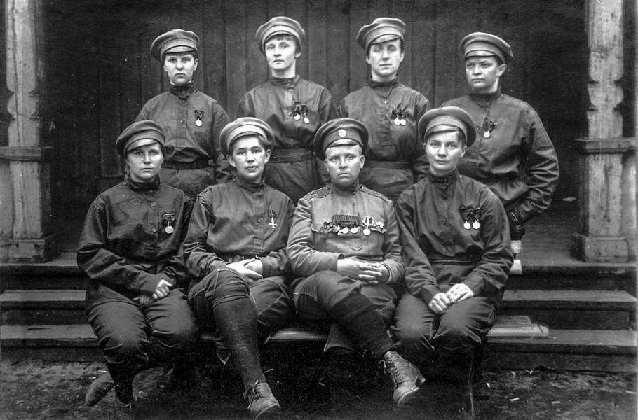 Marija Bočkarjovová (sedí druhá zprava) získala během služby celou řadu vyznamenání. (foto: Wikimedia Commons, Jakov Vladimirovič Štějnberg, PDM 1.0)