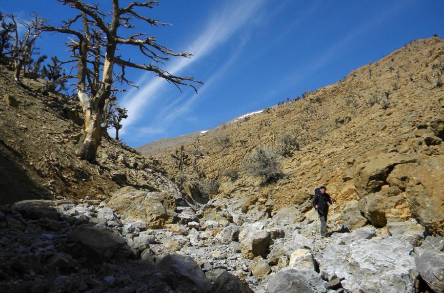 Dostáváme se do vyhlédnutého horského sedla, kde se cesta v mírném oblouku láme do dalšího údolí. Zanedlouho narážíme na upravený pramen vody, který zde má cenu zlata. Navíc lze v jeho okolí slušně tábořit, takže o místě spánku je rozhodnuto. Volného odpoledne využívám na „krátký“ průzkum, z něhož se nakonec (ostatně jako vždy) vyklube docela slušná túra, končící na hraně hřebene ve výši kolem 2 800 metrů.