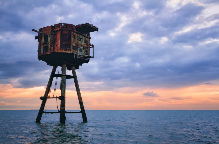 Patří k nejzajímavějším i když poněkud bizarním stavbám 2. světové války - protiletadlové věže Maunsell Forts se dodnes tyčí na vysokých ocelových nohách v ústí řeky Temže. (foto: Profimedia)