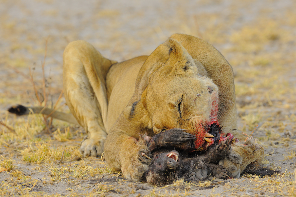 Medojed dokáže obtěžovat a od kořisti zahnat i mladého a nezkušeného lva či levharta. Právě tyto dvě kočkovité šelmy jsou však pro něj vedle člověka jediným nebezpečím, jak dokládá snímek pořízeny v centrálním Kalahari. (foto: Karel Maton ©)