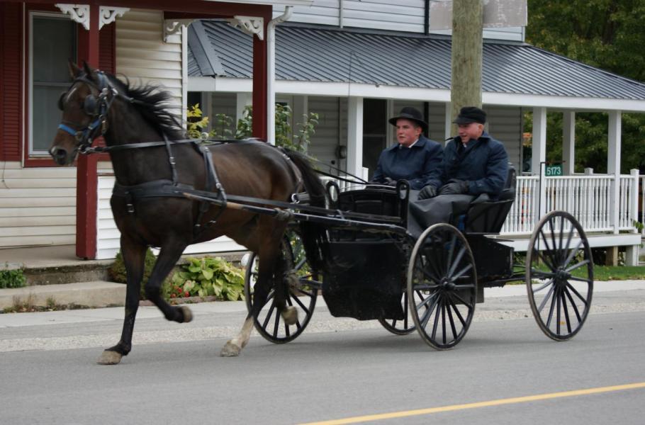 Mennonitský řád z americké Iowy zakazuje všem svým farmářům používat gumová kola. Mennonité z Kanady tak přísní nejsou a pneumatiky běžně používají.