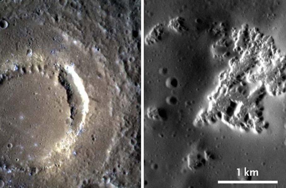 Přímá pozorování při průletech nad severním i jižním pólem potvrzovala výskyt materiálu s vysokým obsahem vodíku. Jakmile se pak přidaly snímky v optické oblasti zachycující vysoce odrazivé plochy na dnech kráterů v polárních lokalitách, které setrvávají v permanentním stínu, bylo jasné, že se skutečně jedná o vodní led. Z povrchové struktury ledovců vyplývá, že k jejich uložení došlo poměrně nedávno, nejspíš někdy v průběhu poslední miliardy let. Na planetě se podle odhadů nachází sto miliard až jeden bilion tun vody a ledovec by místy mohl měřit i 20 m. Navíc se zdá, že led střídavě pokrývá tmavý těkavý materiál, jenž nejspíš obsahuje organické sloučeniny. Vrstva překryvu je podle měření 10–20 cm silná.
