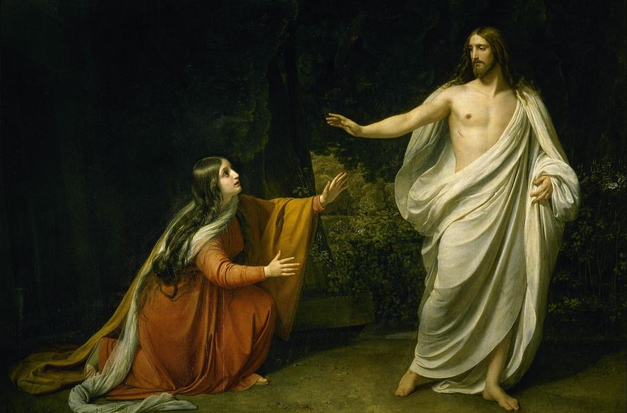 Trochu jinak vypráví příběh evangelista Jan. Podle něj šla k hrobu pouze Marie Magdalská. Našla odvalený kámen a běžela to říci Petrovi a ostatním učedníkům. Petr a Jan se tam vydali, ale místo bylo prázdné a na zemi ležely poházené kusy plátna. Marie se dala do pláče, ale pak se jí zjevili dva andělé a vzápětí i samotný Ježíš. Zdá se tedy, jako by ženy hrály klíčovou roli všude, kde je potřeba nikoli pochopit, ale uvěřit. Muži vystupují jako aktivnější, ale ženy jako vnímavější a intuitivnější.