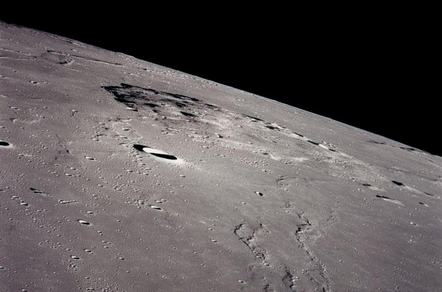 V oblasti lunárního vulkanického komplexu Mons Rümker se nacházejí horniny, které vyvřely přibližně před 2 miliardami let. (foto: Wikimedia Commons, NASA (Apollo 15), CC0)